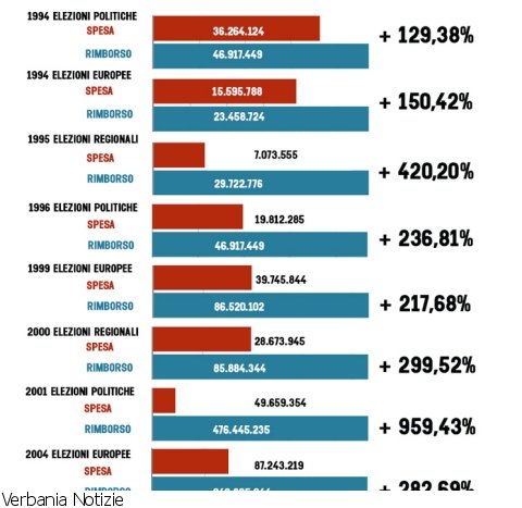 Andrebbe aggiunto un tal Sgarbi, e decine e decine di partiti regionali mascherati da movimenti od altro, alla fine tra tutti prenderanno miliardi di euro. Nell’arco di una legislatura lo Stato elargisce ai partiti più di un miliardo a titolo di rimborso di spese elettorali