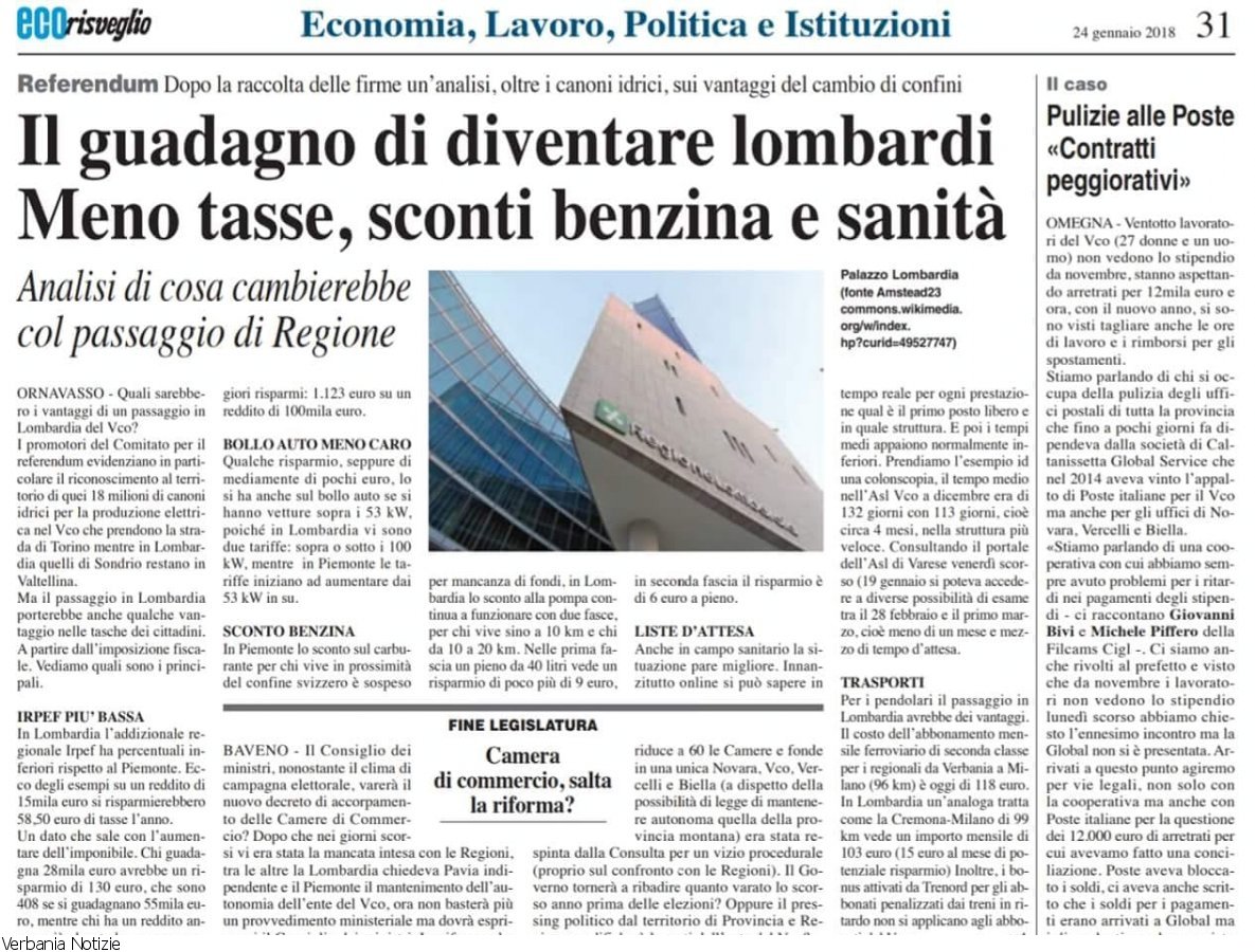 Ma se vincerà il SI verso la Lombardia, cosa concretamente offrirà Milano nei confronti del nuovo territorio? Anche e soprattutto questo è fondamentale ed importante: va aperta una trattativa chiara, perché essere accettati ma non graditi - restando di fatto periferia o inglobati da Varese - non poterebbe a nulla di buono.