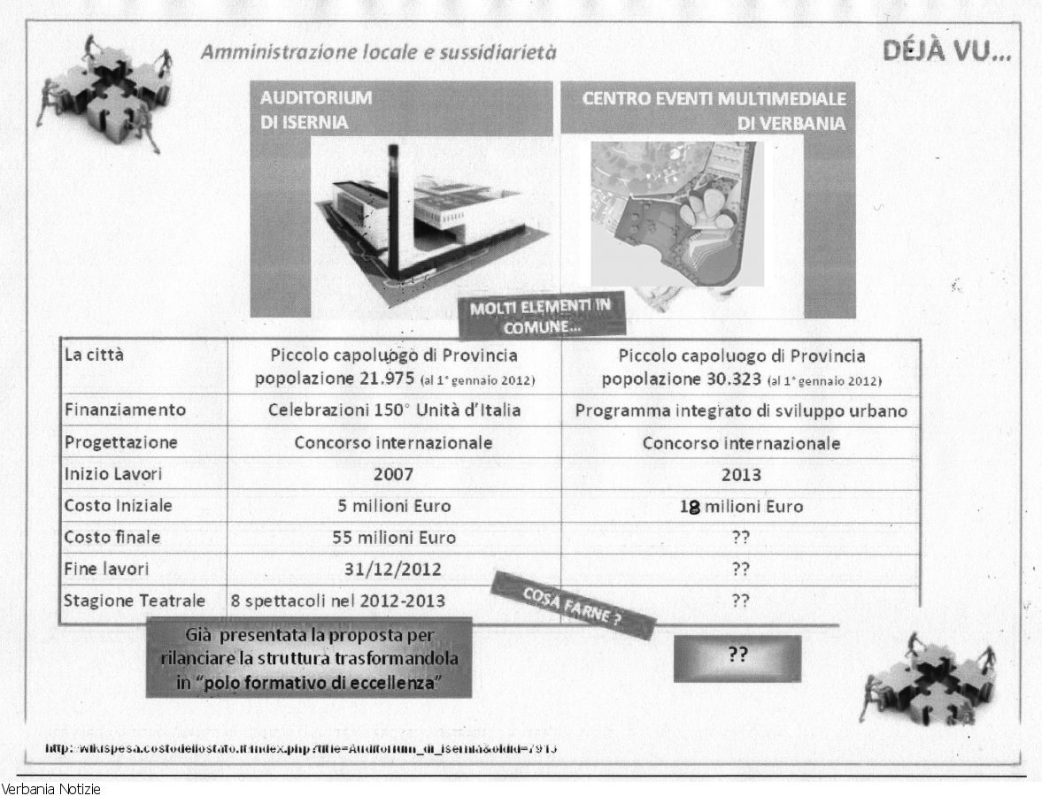 ecco il link per sapere cosa è avvenuto ad Isernia: http://wikispesa.costodellostato.it/Auditorium_di_Isernia