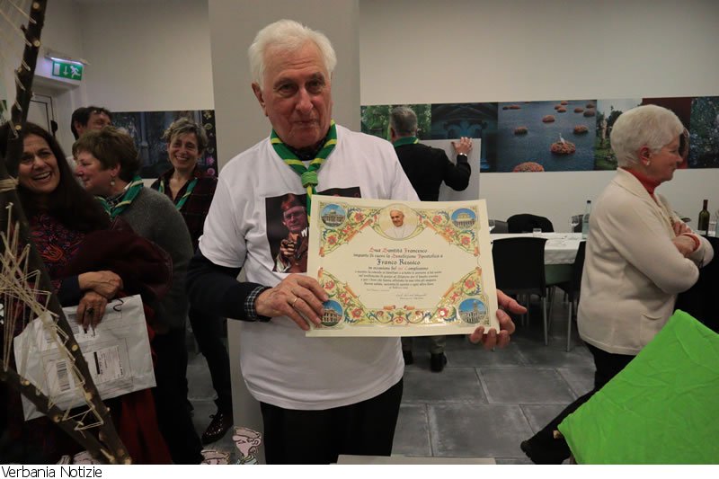 Un tam tam di messaggi tramite whatsApp ha richiamato all’evento, a Casa Immacolata, nel giorno esatto del suo compleanno, oltre cento ex Scouts, provenienti non solo da Verbania, ma anche dalla Lombardia, dalla Toscana e dal Canton Ticino, tutti uniti dall’appartenenza in anni ormai lontani al Gruppo Pallanza 2, che aveva la sua sede principale nelle mansarde del Collegio Santa Maria, e che si sono riuniti in una serata unica ricca di emozioni e di tanti ricordi. Franco Ressico è stato per decenni l’anima dello scautismo pallanzese e “i suoi scouts” con questa festa hanno voluto ringraziarlo per quello che ha saputo loro trasmettere che si può riassumere con l’esortazione scout “di lasciare il mondo un po’ più bello di come lo si è trovato”.