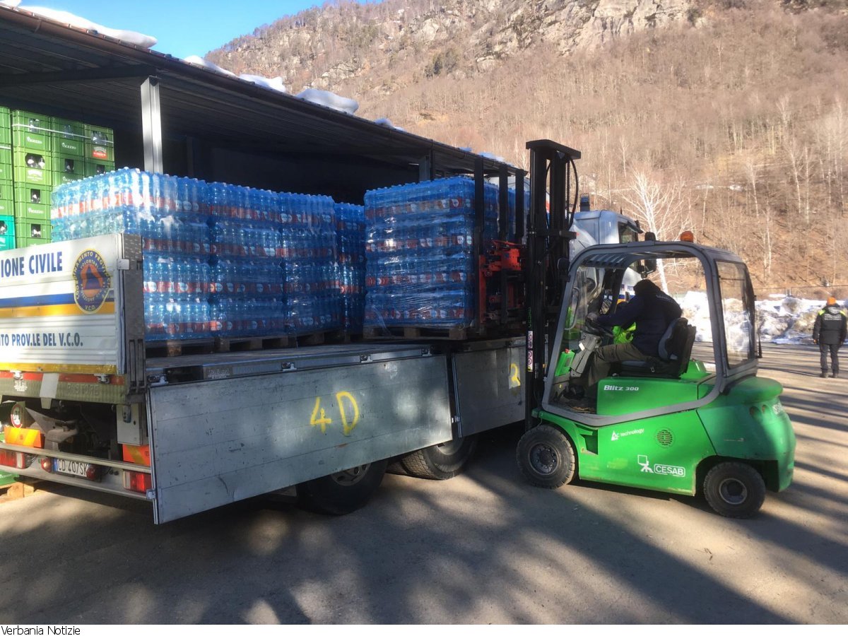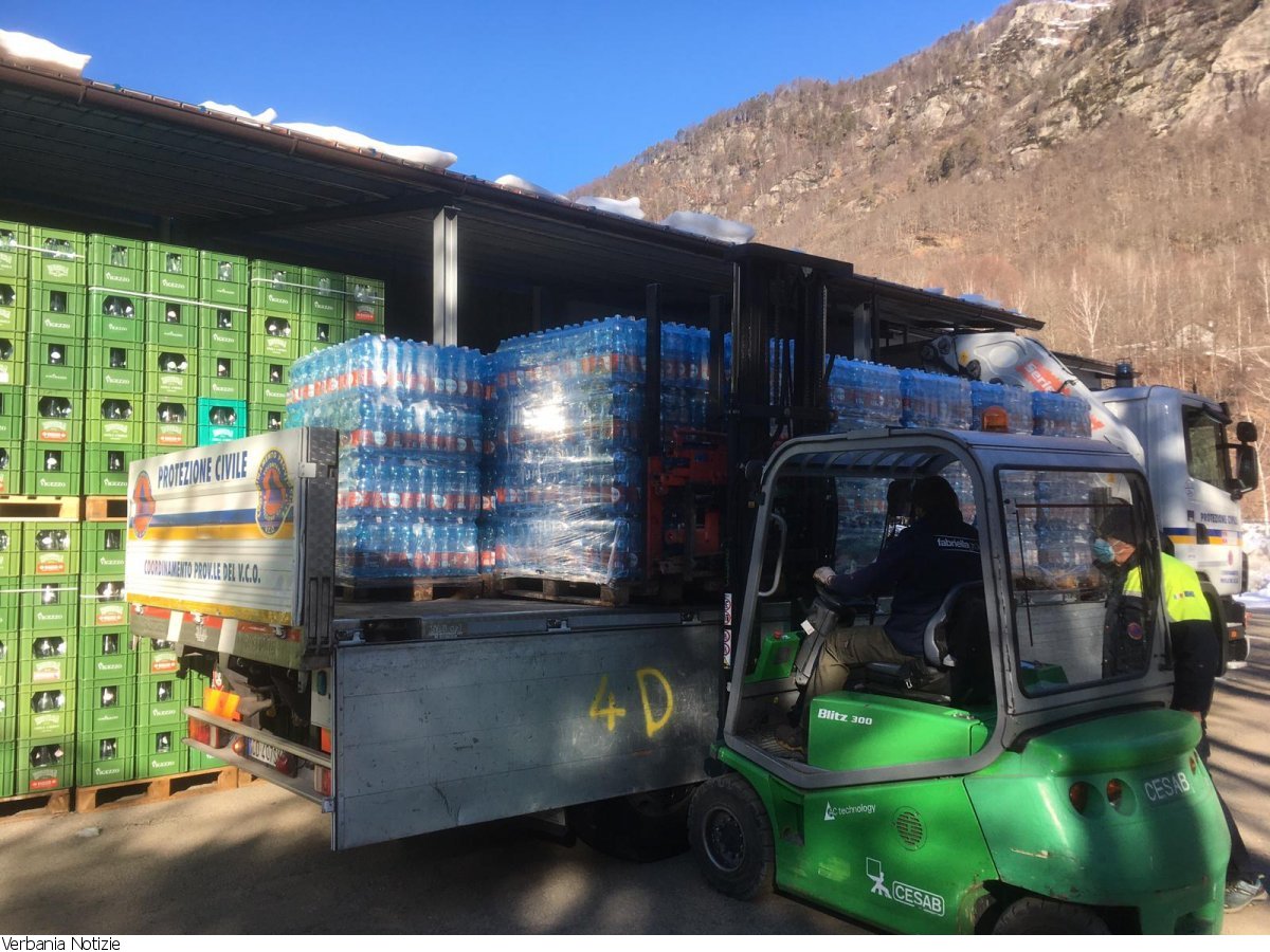 L'Ordine dei Giovanniti ha ritirato 27 bancali di acqua minerale donati dalle Fonti Vigezzo/Fabriella Group alla sezione Giovannita di Verbania.