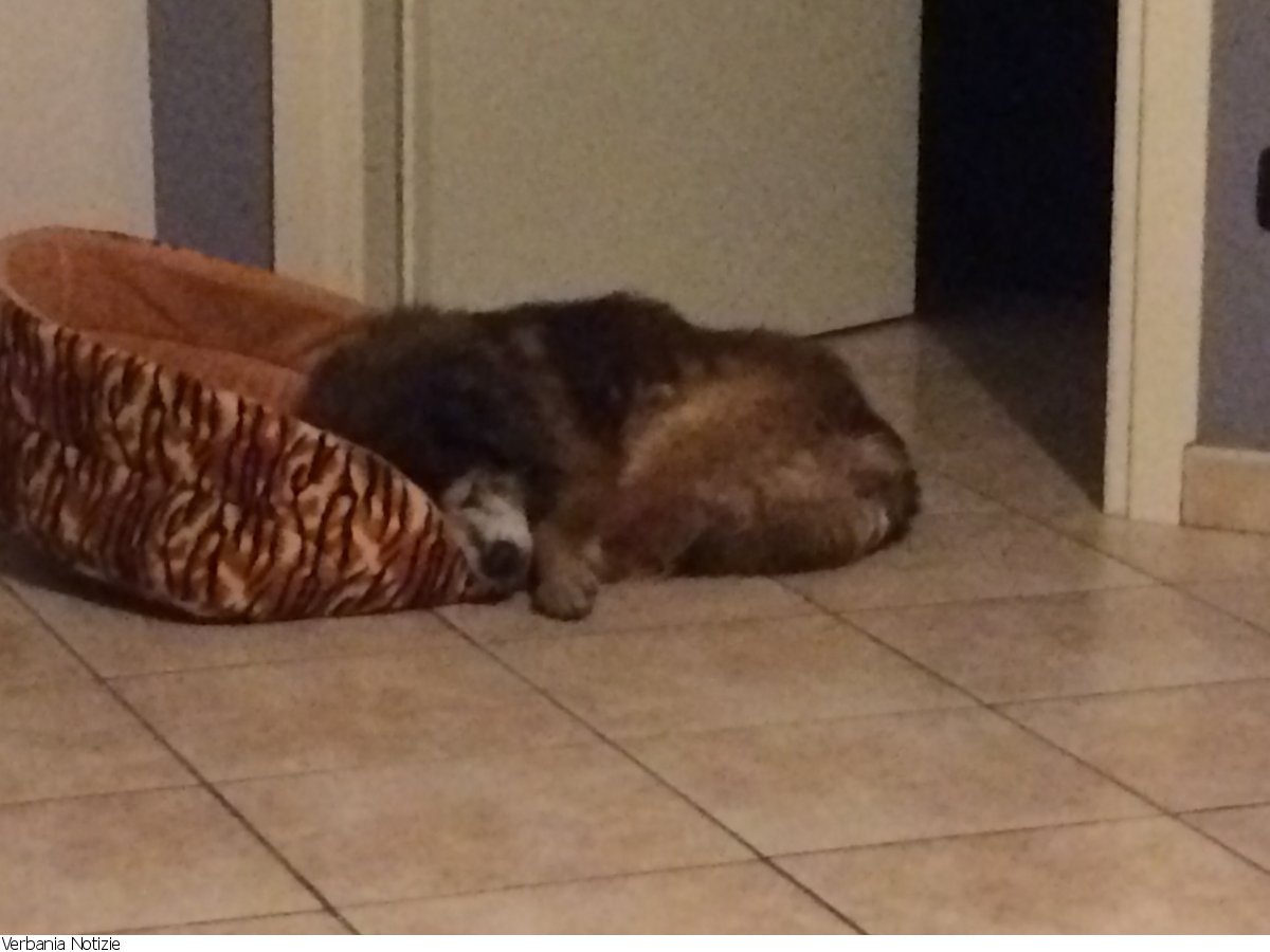 Lucio il cane di oltre 15 anni cieco e sordo che Adigest ha fotografato con orrore nella cucina dove da anni viveva al caldo coccolato dagli operatori e dai volontari grazie all'appoggio prestato al suo canile da oltre 3000 verbanesi due settimane fa aveva trovato una famiglia.