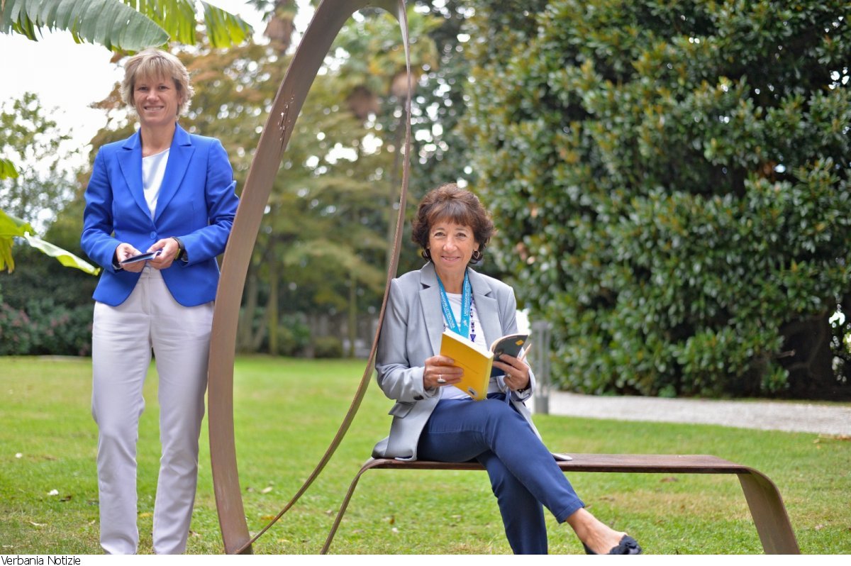 Significativo anche l’altro momento vissuto durante il festival di Verbania: «Il giorno di apertura della manifestazione – conclude l’architetto Montalto – è stato inaugurato il totem per libri a completamento del progetto iniziato lo scorso anno con la “panchinELLE”»: ambedue gli elementi sono stati progettati gratuitamente dall’architetto Renata Montalto. «La panchina è stata donata da LetterAltura al Comune di Verbania in occasione del 15° anno di attività con l’obiettivo di lasciare alla città qualcosa che durasse nel tempo. La panchina, realizzata con una lastra piegata e sagomata di acciaio corten, riproduce una elle scritta in corsivo minuscolo a ottenere una linea morbida e flessuosa che richiami le onde del nostro lago e i profili delle nostre montagne e si inserisce perfettamente nell’ambiente circostante.