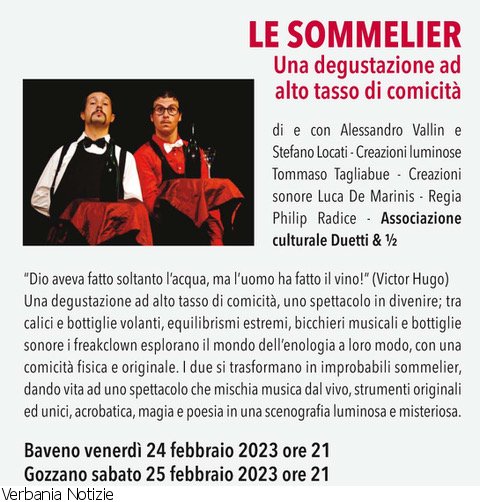 LE SOMMELIER di e con Alessandro Vallin e Stefano Locati è una degustazione ad alto tasso di comicità, uno spettacolo in divenire; tra calici e bottiglie volanti, equilibrismi estremi, bicchieri musicali e bottiglie sonore i Freakclown esplorano il mondo dell’enologia a loro modo, con una comicità fisica e originale.