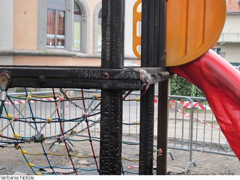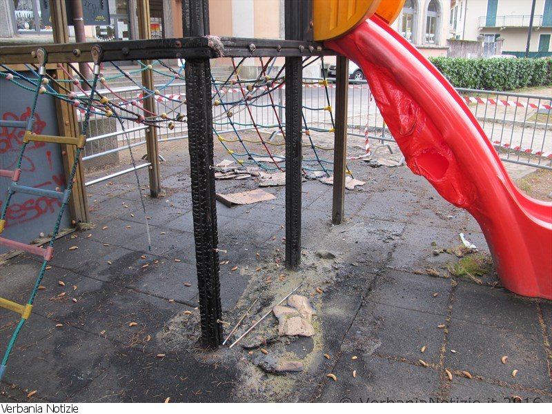 Atto di vandalismo al Parco Giochi in piazza Fabbri a Intra, adiacente la chiesa S.Giuseppe e le scuole Cantelli.