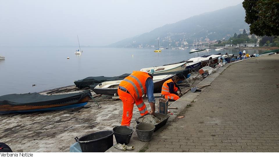 In questi giorni le due squadre sono presenti sul lungolago di Pallanza e Suna (e poi sarà la volta di Intra) con interventi di pulizia, sfalcio erba infestante, carteggiatura e verniciatura arredi (panche, cestini, barriere a lago), sostituzione parti danneggiate panche in legno e sistemazione pavimentazioni lapidee.