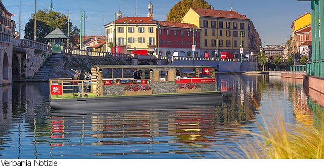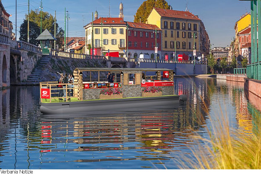 Dal 16 maggio al 10 giugno un tipico chalet di montagna galleggiante navigherà sulle acque del Naviglio Grande.