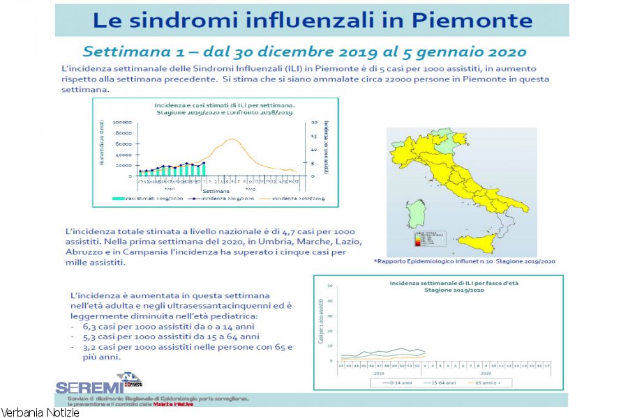 L’incidenza settimanale è di 5 casi per mille assistiti: nel dettaglio, 6,3 casi per 1000 assistiti da 0 a 14 anni; 5,3 casi per 1000 assistiti da 15 a 64 anni; 3,2 casi per mille assistiti nelle persone con 65 e più anni. Il dato è in linea con la tendenza nazionale. Si prevede che il picco dell’epidemia sarà nelle prossime settimane.