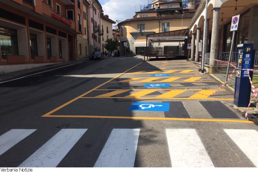 Questa mattina ci siamo svegliati senza i parcheggi regolamentati con parchimetro di Via XXV Aprile a Intra e con una nuova segnaletica orizzontale!
