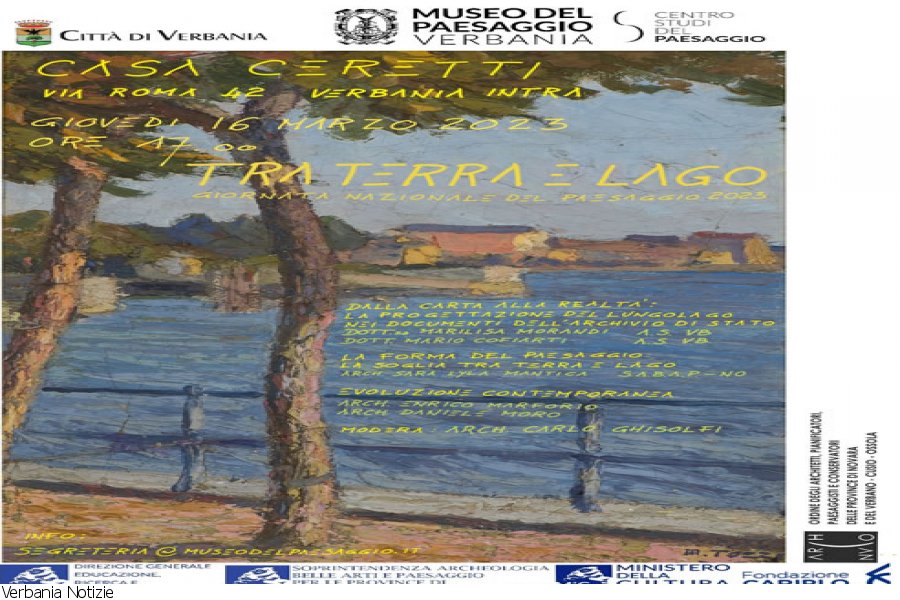 Sempre in occasione della Giornata del Paesaggio, il Centro studi del Paesaggio del Museo organizza un seminario dal titolo “Tra terra e lago”, un dialogo sulla trasformazione della striscia di terra posta tra lago e abitato da luogo di lavoro a Lungolago turistico attraverso l'introduzione dell'allea, il giorno 16 Marzo alle ore 17.00 presso la sede di Casa Ceretti (Via Roma 42 – Verbania Intra).