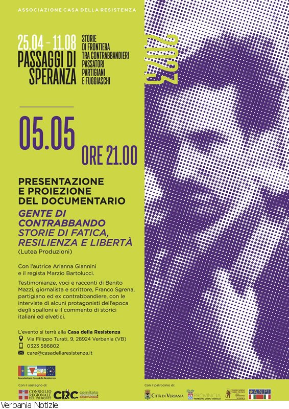 L’evento rientra nell’ambito della mostra e della rassegna Passaggi di speranza. Storie di frontiera tra contrabbandieri, passatori, partigiani e fuggiaschi, promossa dalla Casa della Resistenza con il sostegno del Consiglio regionale del Piemonte-Comitato Resistenza e Costituzione e con il patrocinio della Città di Verbania, Provincia del VCO, ANPI e Museo dello Spallone di Masera.