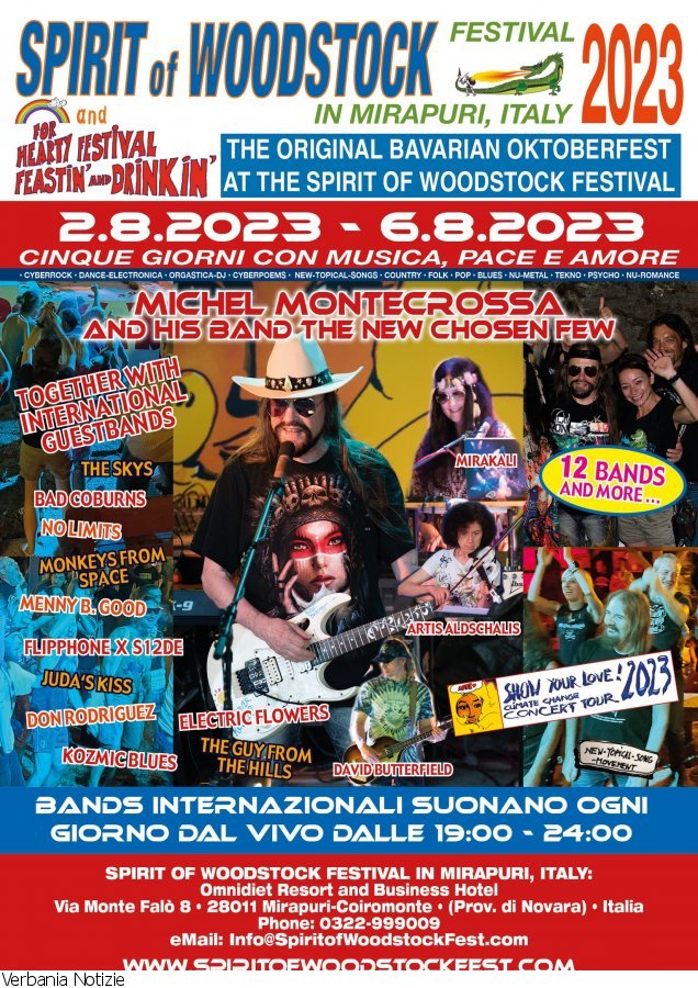 Spirit of Woodstock Festival 2023 a Mirapuri: dal 2. Agosto - 6. Agosto 2023 Michel Montecrossa, Mirakali ed il suo gruppo The New Chosen Few accanto a band internazionali suonano per Amore & Libertà sul festival più importante della Free-Music Revolution europea.