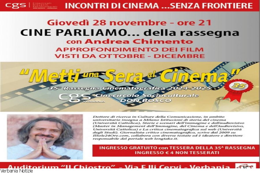 Giovedi 28 novembre 2024, alle ore 21:00, "CINE PARLIAMO" ....della rassegna con Andrea Chimenti incontri di cinema senza frontiere.