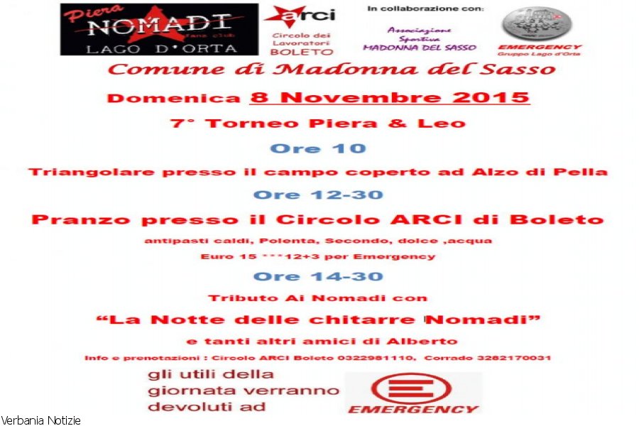 Domenica 8 novembre 2015 a Madonna del Sasso di terrà il 7° Torneo Piera & Leo.