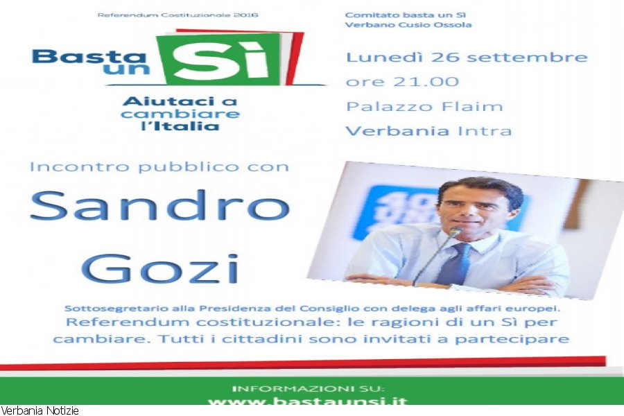 E’ infatti in calendario un incontro pubblico con Sandro Gozi, Sottosegretario alla Presidenza del Consiglio dei ministri con delega agli affari europei, lunedì 26 settembre alle ore 21.00 presso palazzo Flaim a Verbania Intra.